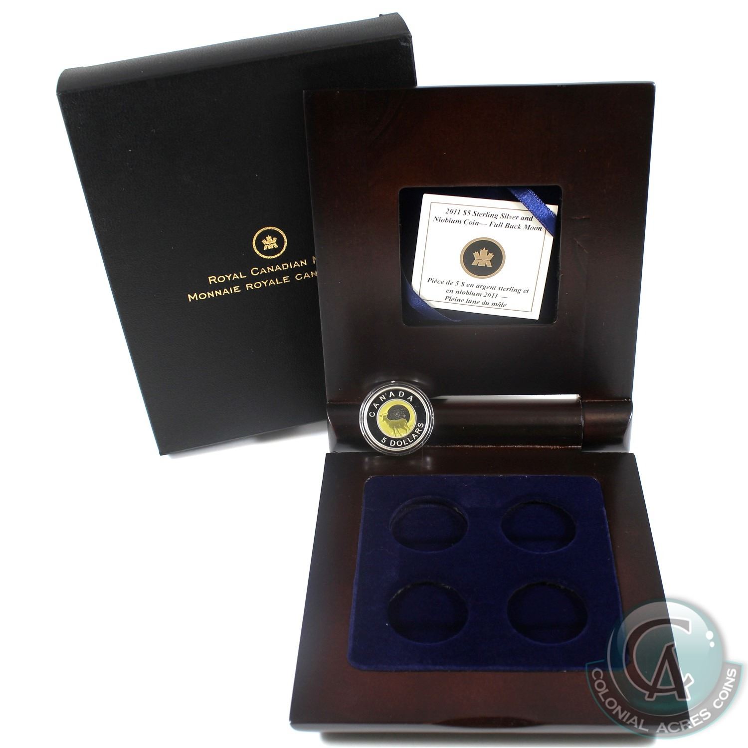 2011 Canada $5 Full Moons of the Algonquin - Full Buck Moon Sterling Silver & Niobium Coin in the Full Set's Deluxe Wooden Case.