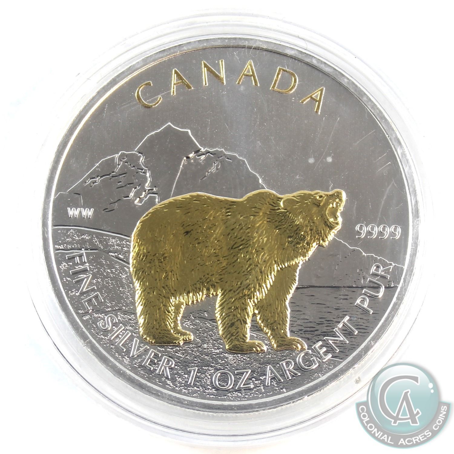 2011 Canada $5 Gilded Grizzly 1oz Fine Silver Maple (Tax Exempt)
