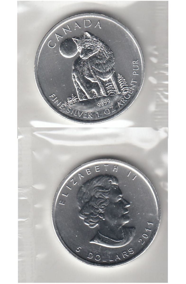 2011 Canada Wolf 1 oz. Silver Maple Leaf SEALED IN ORIGINAL PLIOFILM PLASTIC - Tax exempt
