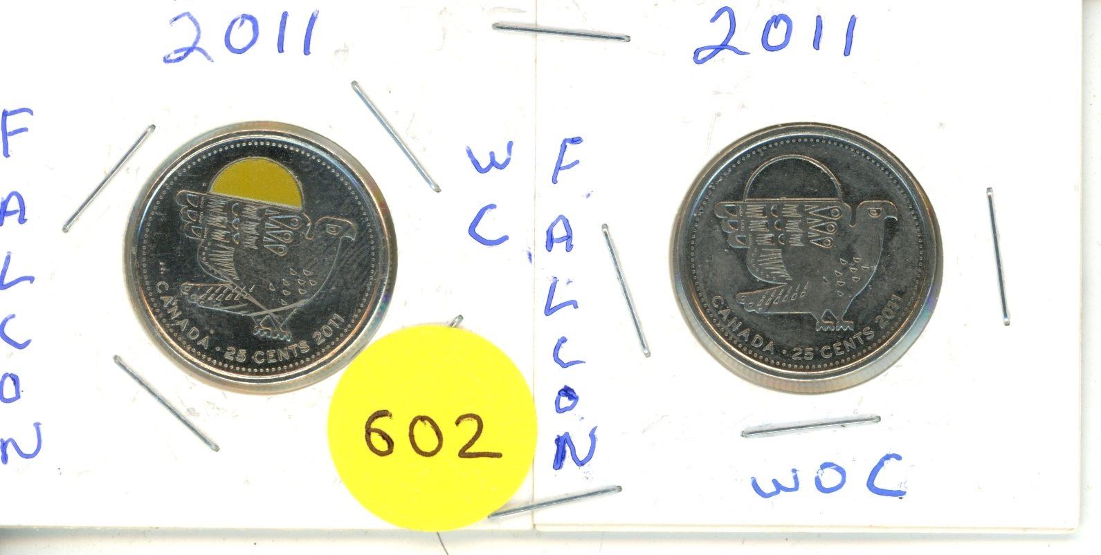 2011 Canadian Quarters, Falcon With Colour And Without Colour