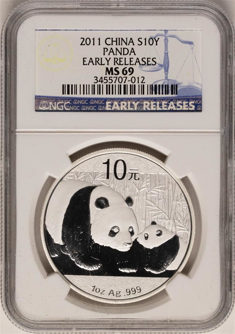 One 2011 China 10 Yuan Silver Panda Coin NGC MS69 Early Releases. NGC Certified.