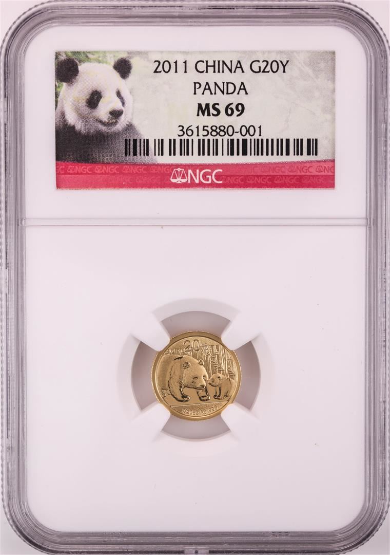 One 2011 China 20 Yuan Panda Gold Coin NGC MS69. NGC Certified.