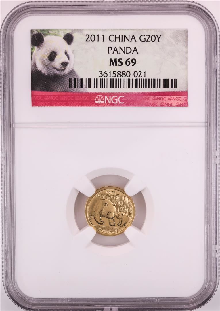 One 2011 China 20 Yuan Panda Gold Coin NGC MS69. NGC Certified.