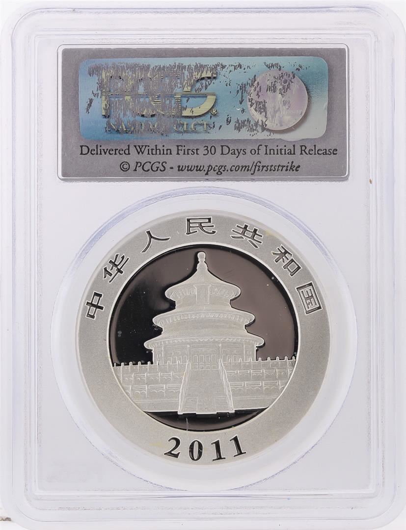 One 2011 China Panda Silver Coin 10 Yuan PCGS First Strike MS70. PCGS Graded.