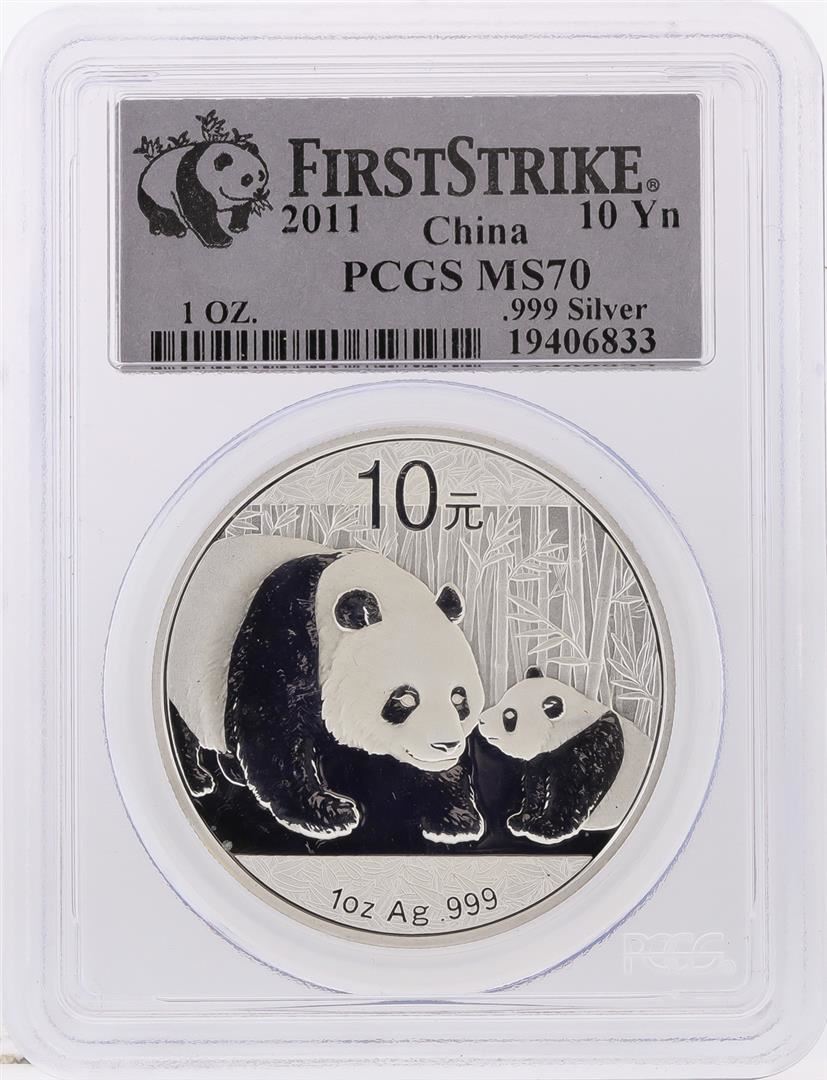 One 2011 China Panda Silver Coin 10 Yuan PCGS First Strike MS70. PCGS Graded.