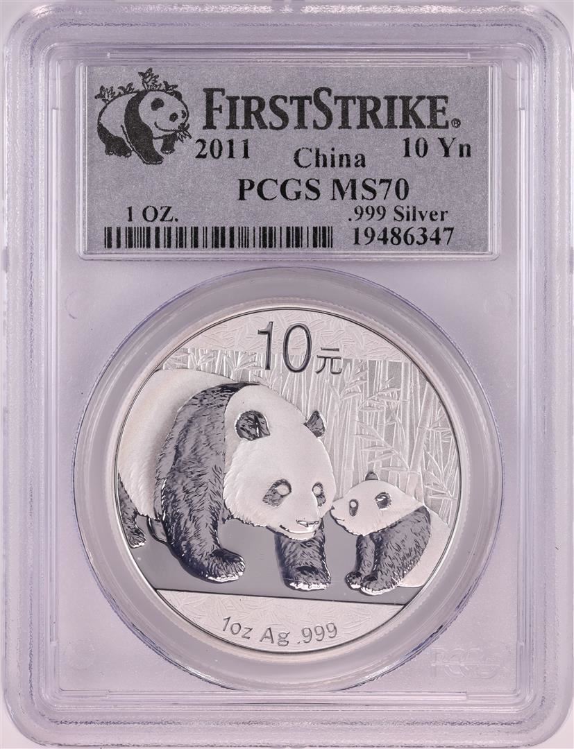 One 2011 China Panda Silver Coin PCGS MS70 First Strike. PCGS Graded.