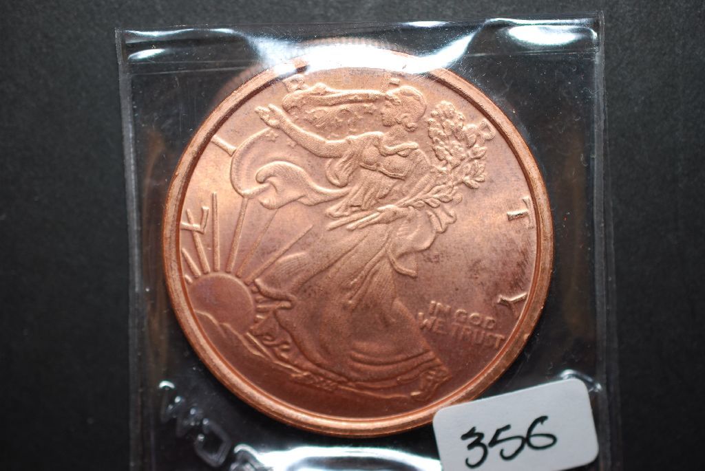 2011 Coper Round "Walking Liberty Type"; .999 Fine Copper 1 Oz.; EST. $5-10