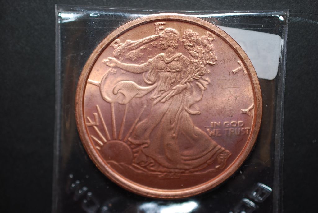 2011 Coper Round "Walking Liberty Type"; .999 Fine Copper 1 Oz.; EST. $5-10