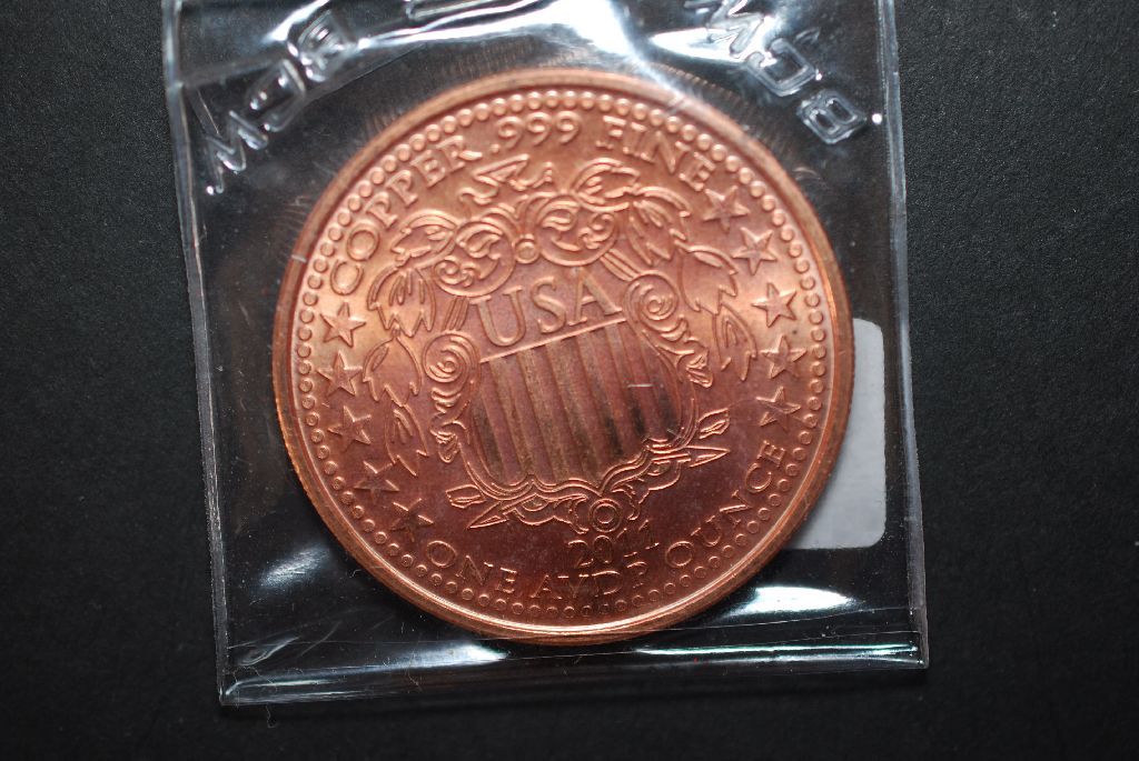 2011 Copper Round "Bald Eagle Type"; .999 Fine Copper 1 Oz.; EST. $5-10
