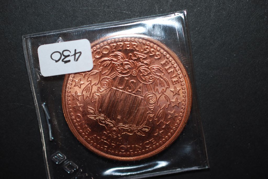 2011 Copper Round "St. Gauden's Type"; .999 Fine Copper 1 Oz.; EST. $5-10