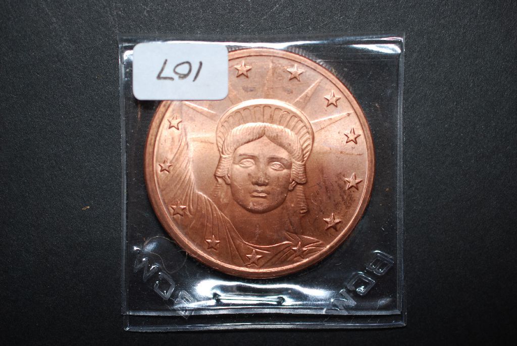 2011 Copper Round "Statue Of Liberty Type"; .999 Fine Copper 1 Oz.; EST. $5-10