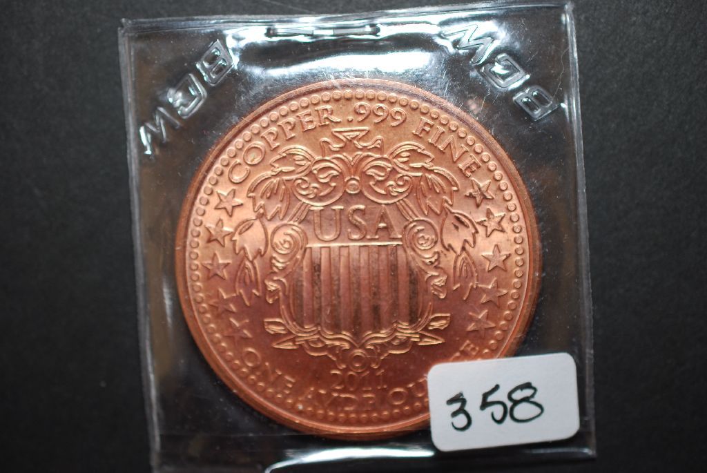 2011 Copper Round "Statue Of Liberty Type"; .999 Fine Copper 1 Oz.; EST. $5-10