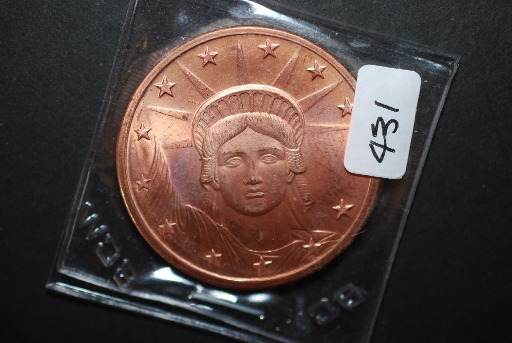 2011 Copper Round "Statue Of Liberty Type"; .999 Fine Copper 1 Oz.; EST. $5-10