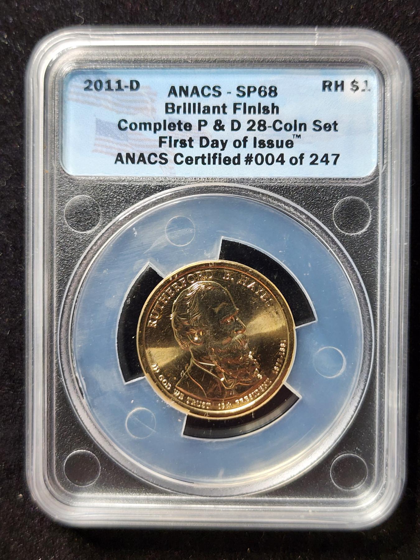2011-D ANACS - SP68 Brilliant Finish Hayes $1 Coin From 28 Coin Set - First Day of Issue