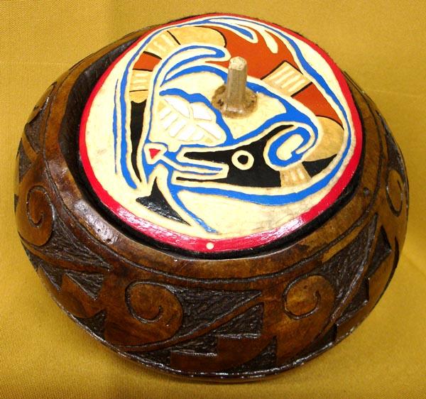 2011 Decorated Lidded Gourd, Hopi Design With Hallmark. Gourd has Hopi design and lid is Santa Clara water serpent design. Hallmarked on bottom for Frank Anderson of Silver City, NM. Measures 5.25''x6''W. Buyers Pay Actual Shipping and Handling Charges(see terms and conditions for more information).