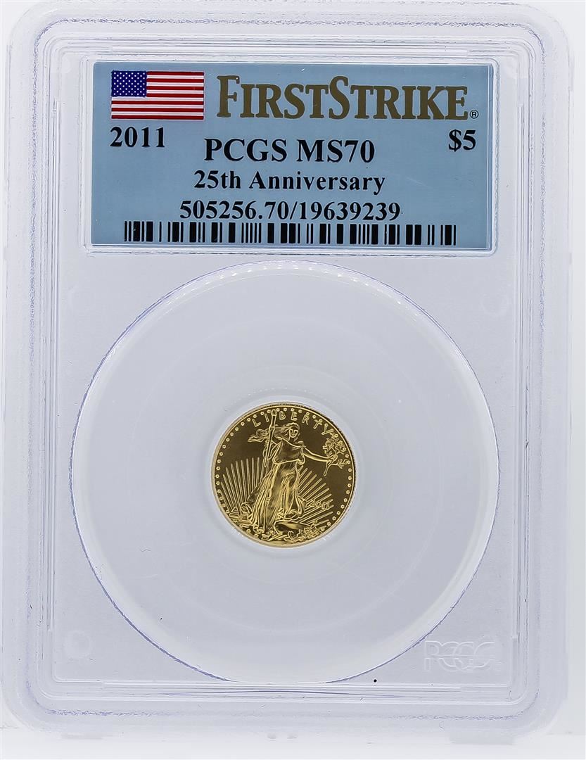 2011 First Strike $5 Eagle Gold Coin 25th Anniversary PCGS MS70