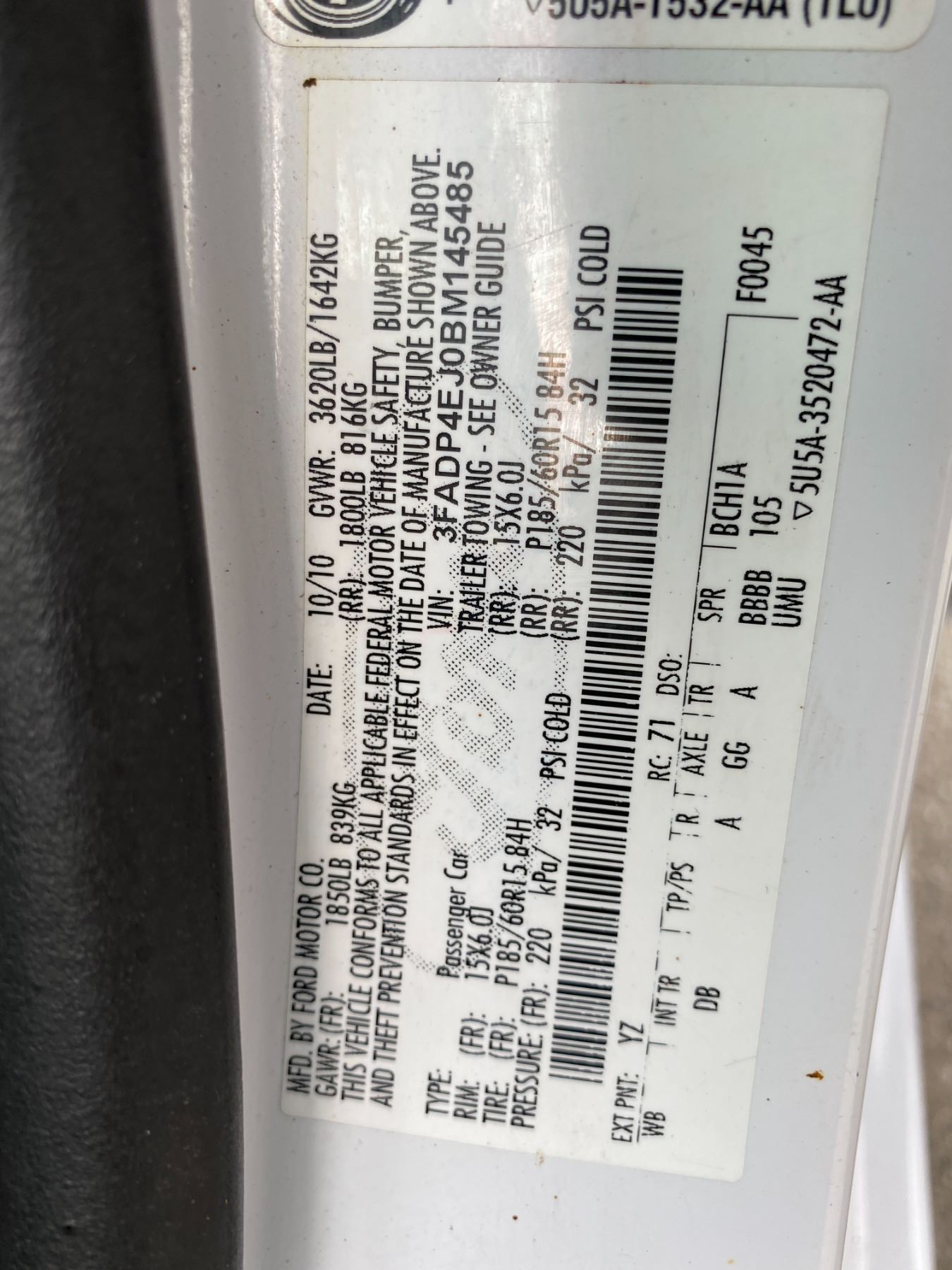 VIN:3FADP4EJ0BM145485
