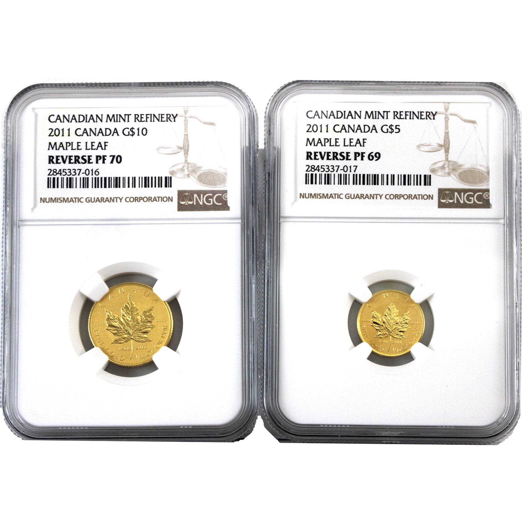 Coins are respectively 1/10oz and 1/4oz .9999 Gold. From fractional set