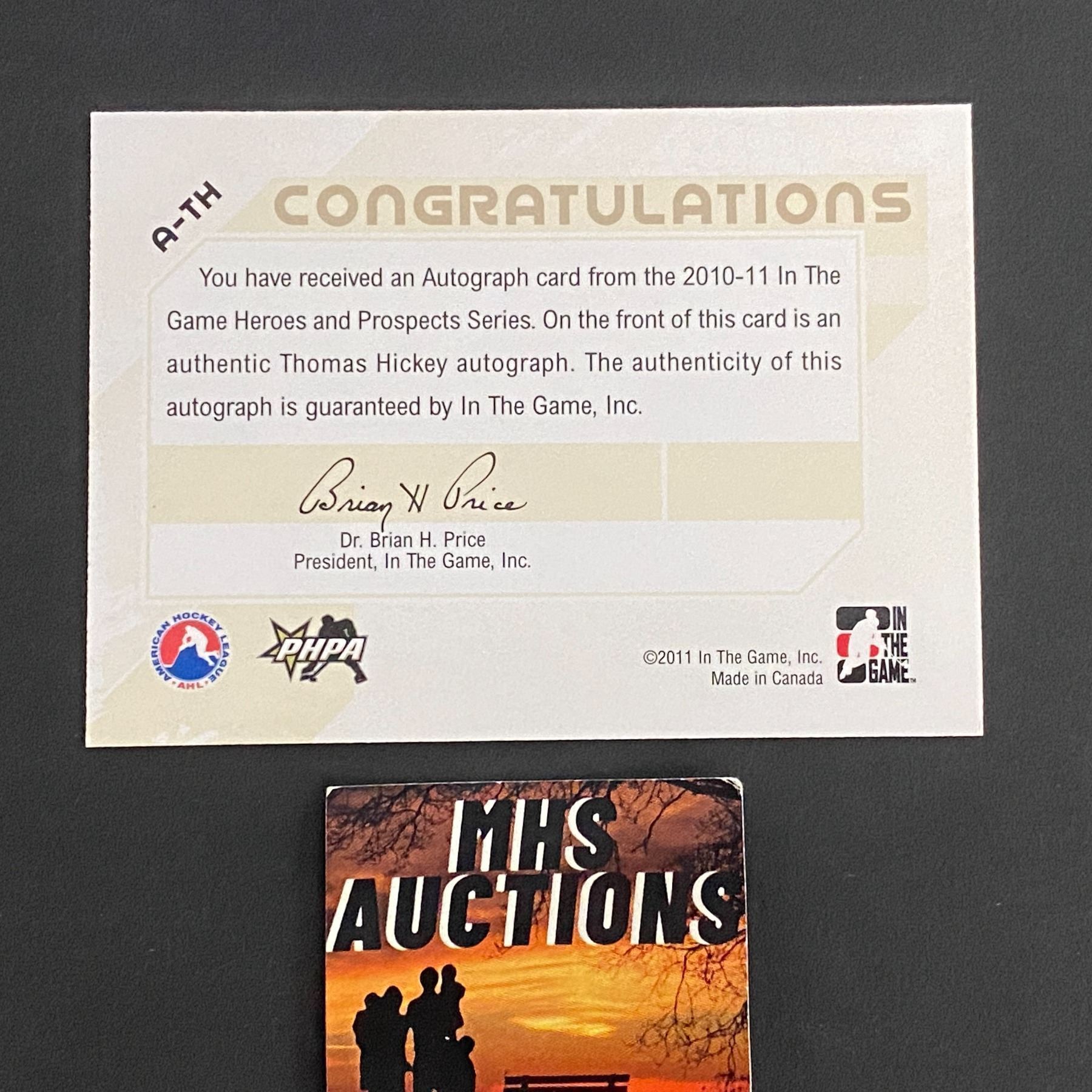 2011 IN THE GAME AUTOGRAPH THOMAS HICKEY HOCKEY CARD