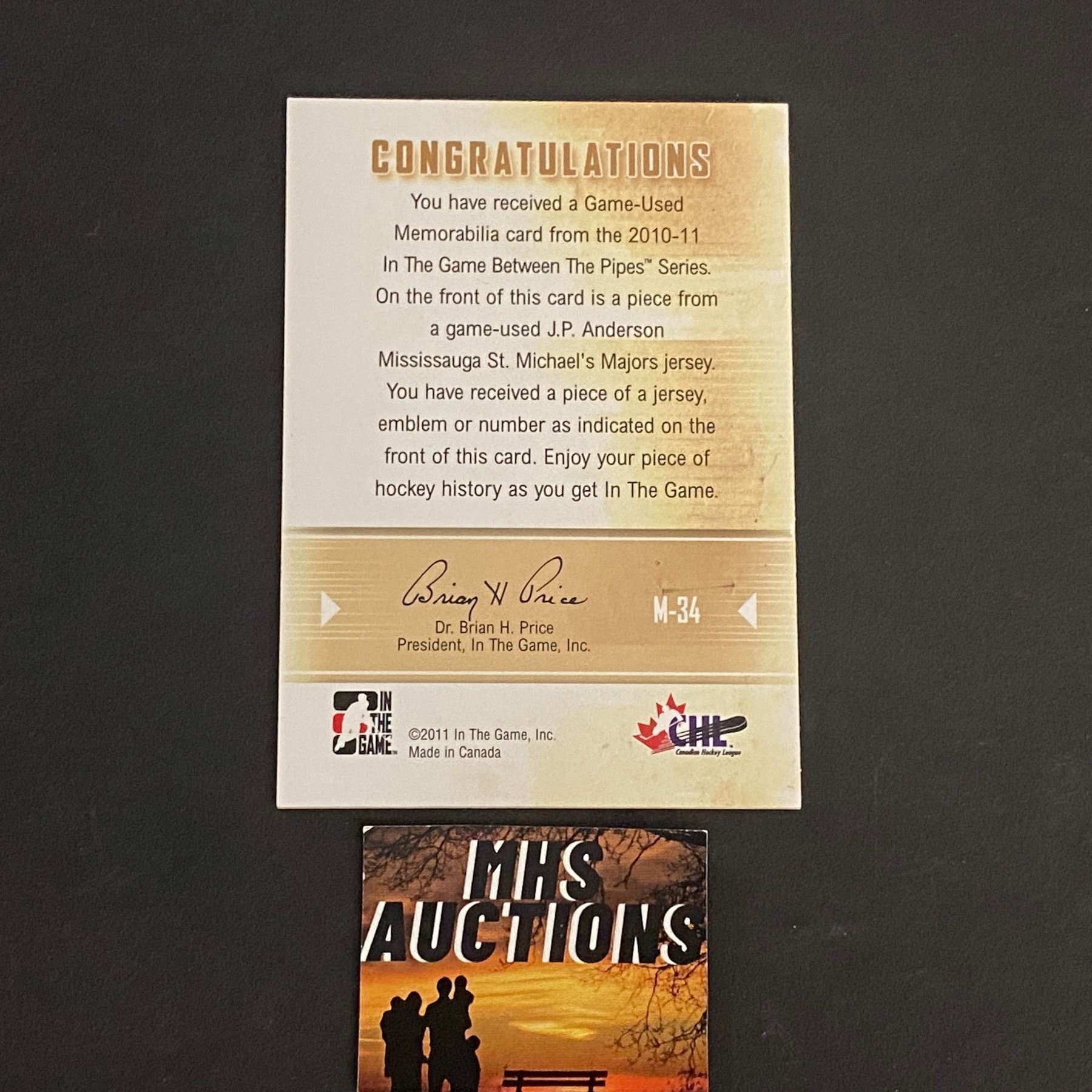 2011 IN THE GAME PATCH CARD J.P ANDERSON HOCKEY CARD