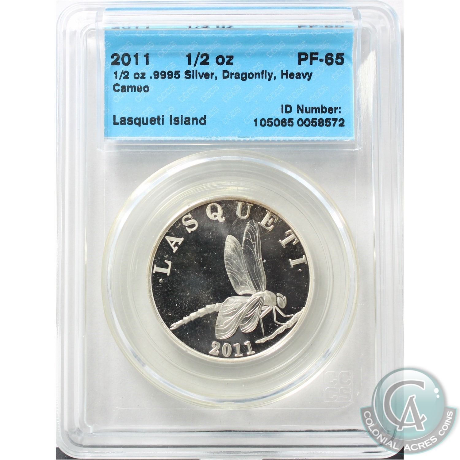 2011 Lasqueti Mint 1/2oz .9995 Silver Round Dragonfly Design CCCS Certified PF-65 Heavy Cameo
