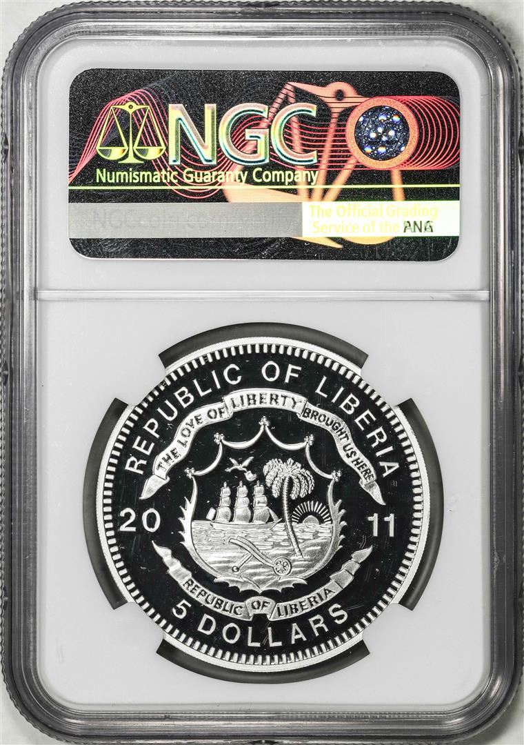 2011 Liberia $5 History of Railroads Flam Line Silver Coin NGC PF70 Ultra Cameo
