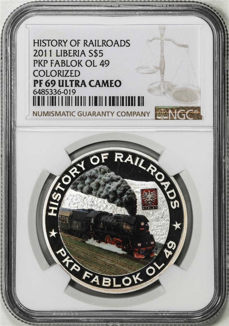 One 2011 Liberia $5 History of Railroads PKP Fablok OL 49 Silver Coin NGC PF69 Ultra Cameo. NGC Certified.