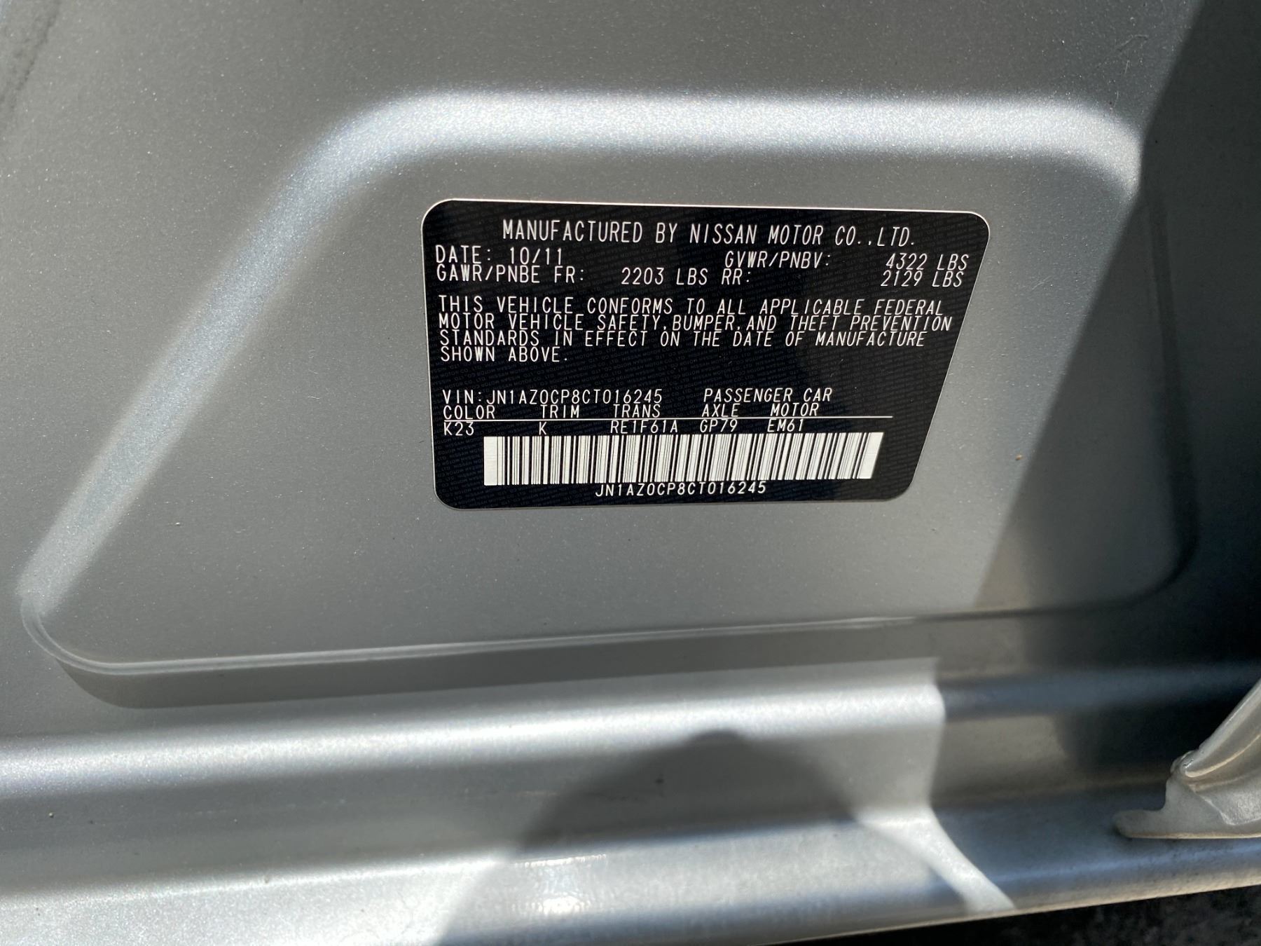 VIN:JN1AZ0CP8CT016245