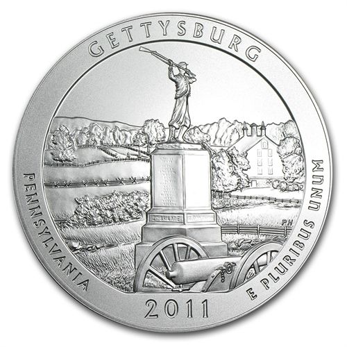 2011-P 5 oz Silver ATB Gettysburg (w/box & CoA) **|**|** Year: 2011 ; Mint Mark: Uncirculated ; Grade: P - Philadelphia ; Denomination: $0.25 ; MSRP: $500