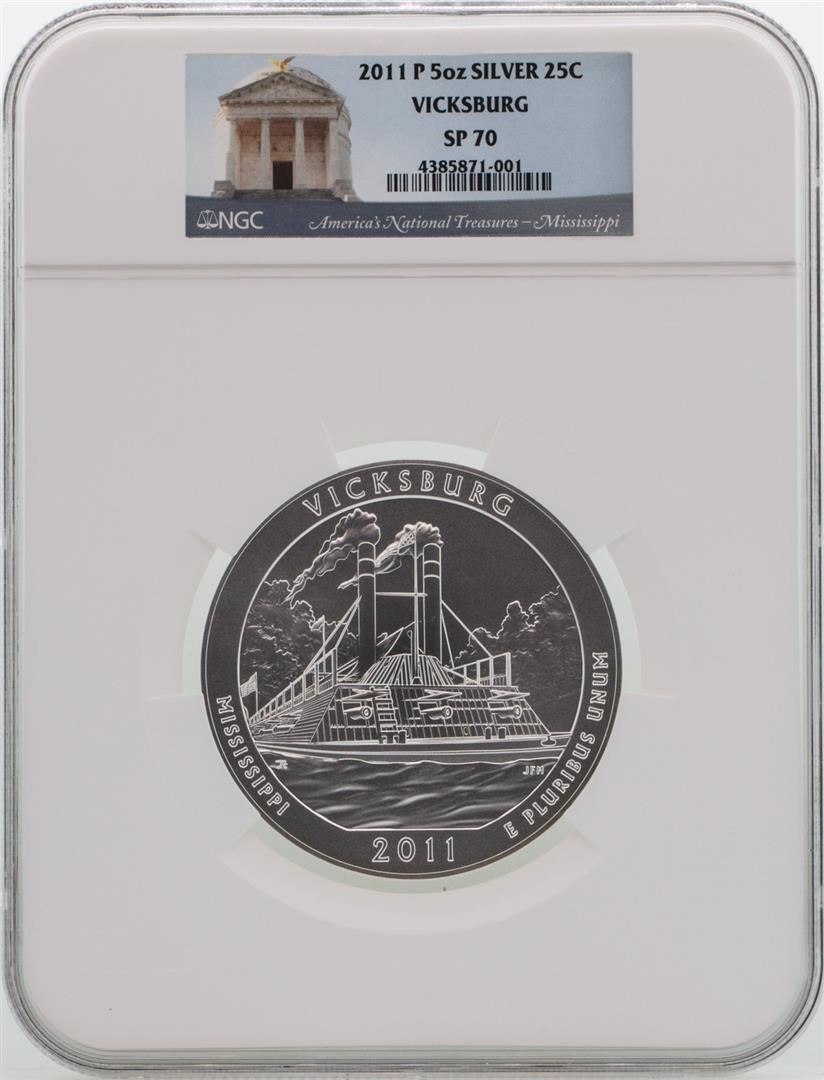 2011-P America the Beautiful Vicksburg 5 Ounce Silver Coin NGC SP70