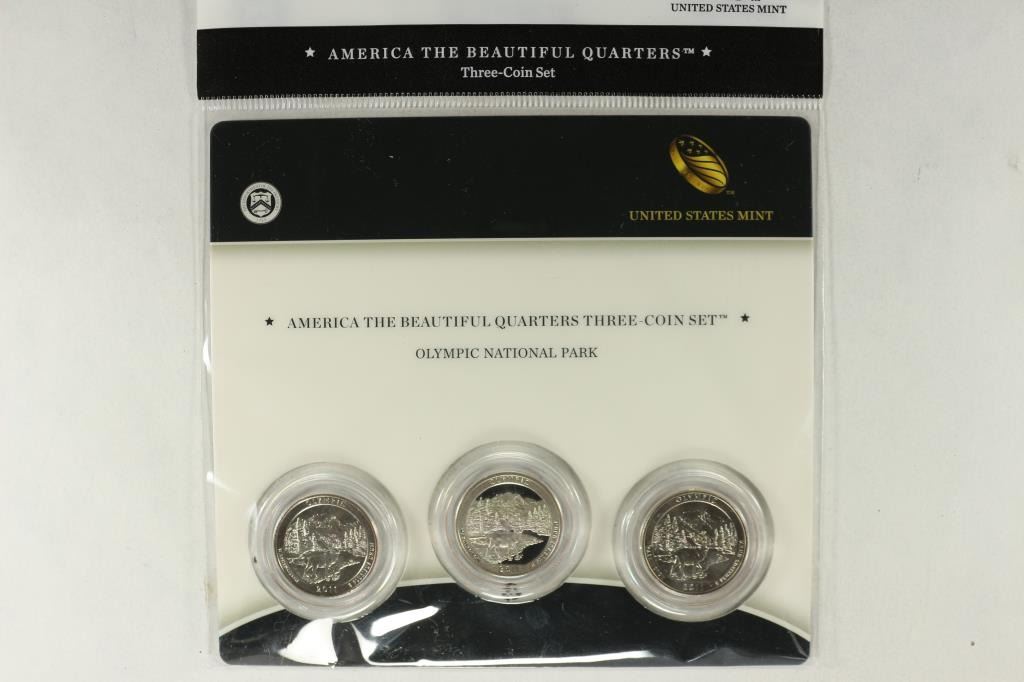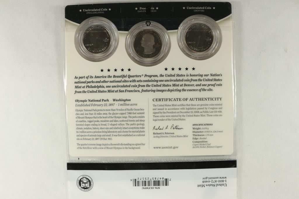 COIN SET 2 UNC'S AND A PROOF, OLYMPIC NATIONAL PARK, ORIGINAL US MINT PACKAGING