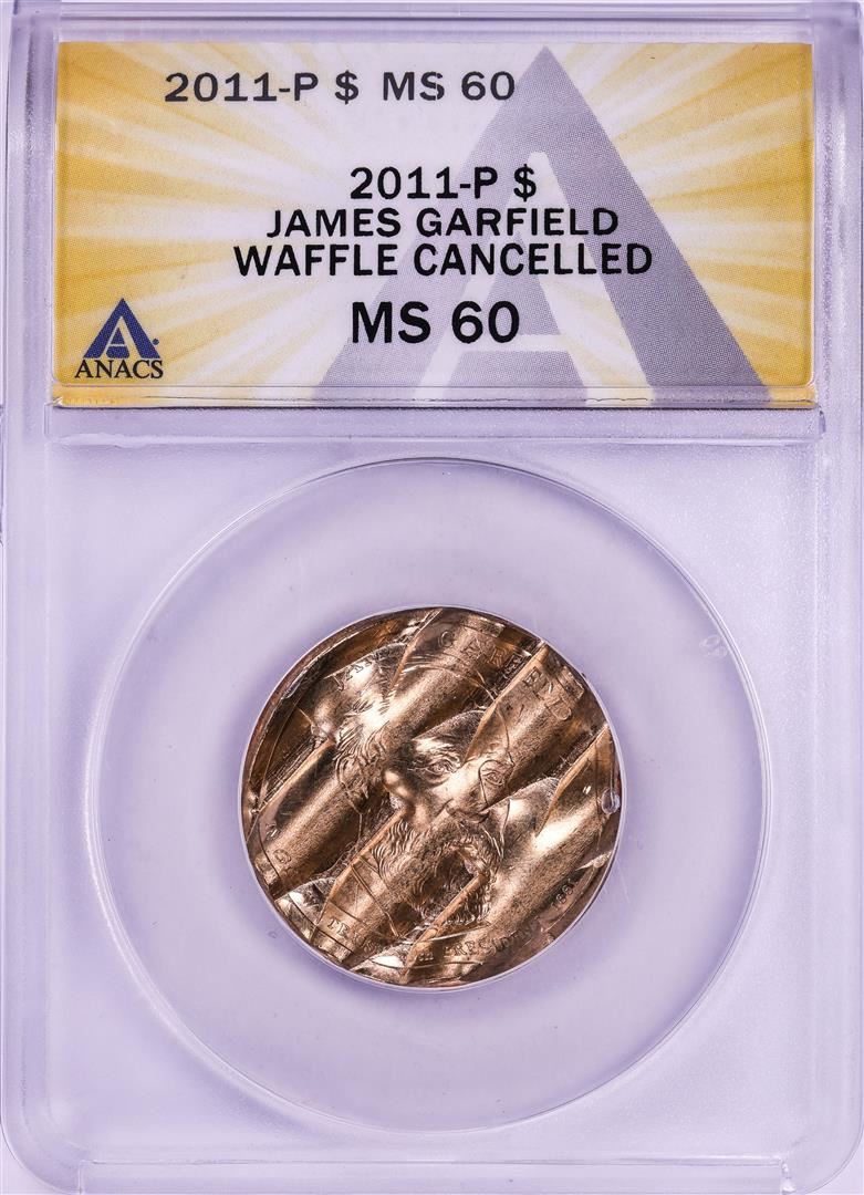 2011-P James Garfield Presidential Dollar Waffle Cancelled Coin ANACS MS60