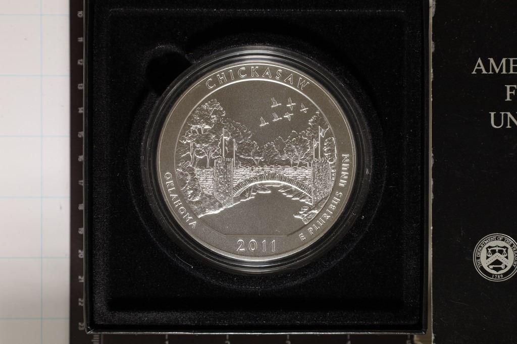 CHICKASAW NATIONAL RECREATION AREA, OKLAHOMA. IN ORIGINAL US MINT PACKAGING WITH CERTIFICATE, COIN IS UNC WITH A BURNISHED FINISH