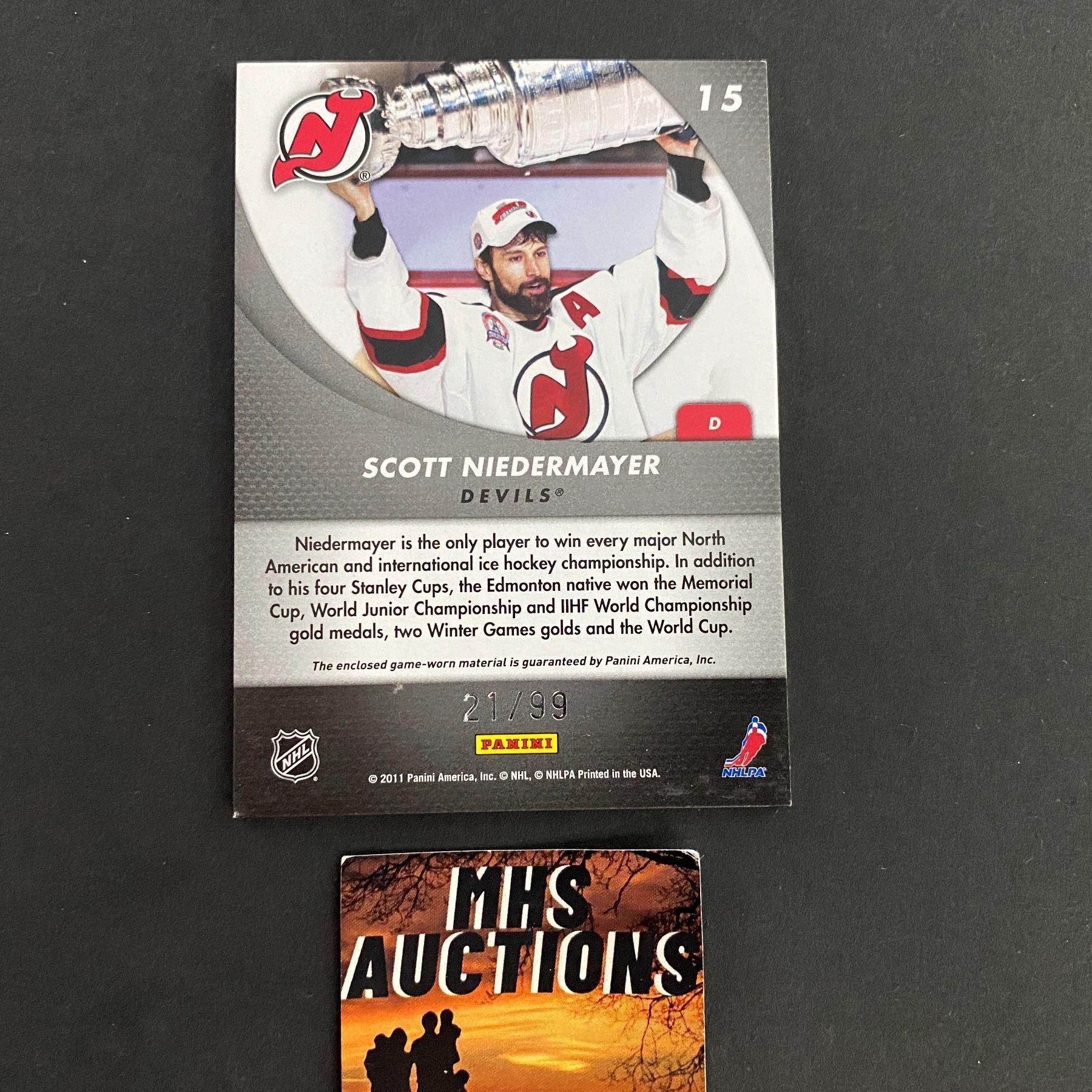 2011 PANINI SCOTT NIEDERMAYER HOCKEY JERSEY CARD #21/99