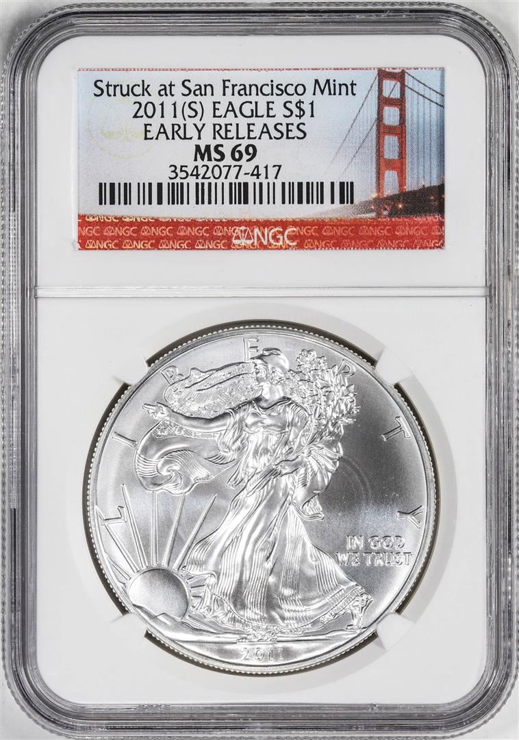 2011-(S) $1 American Silver Eagle Coin NGC MS69 Early Releases San Francisco Mint