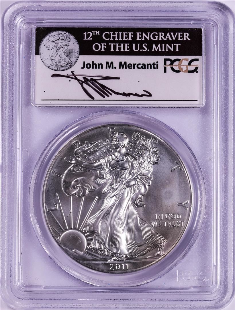 2011-S $1 American Silver Eagle Coin PCGS MS68 First Strike Mercanti Signature