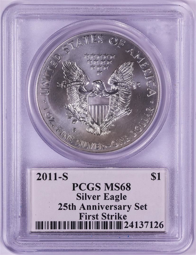 One 2011-S $1 American Silver Eagle Coin PCGS MS68 First Strike Mercanti Signature. PCGS Graded.