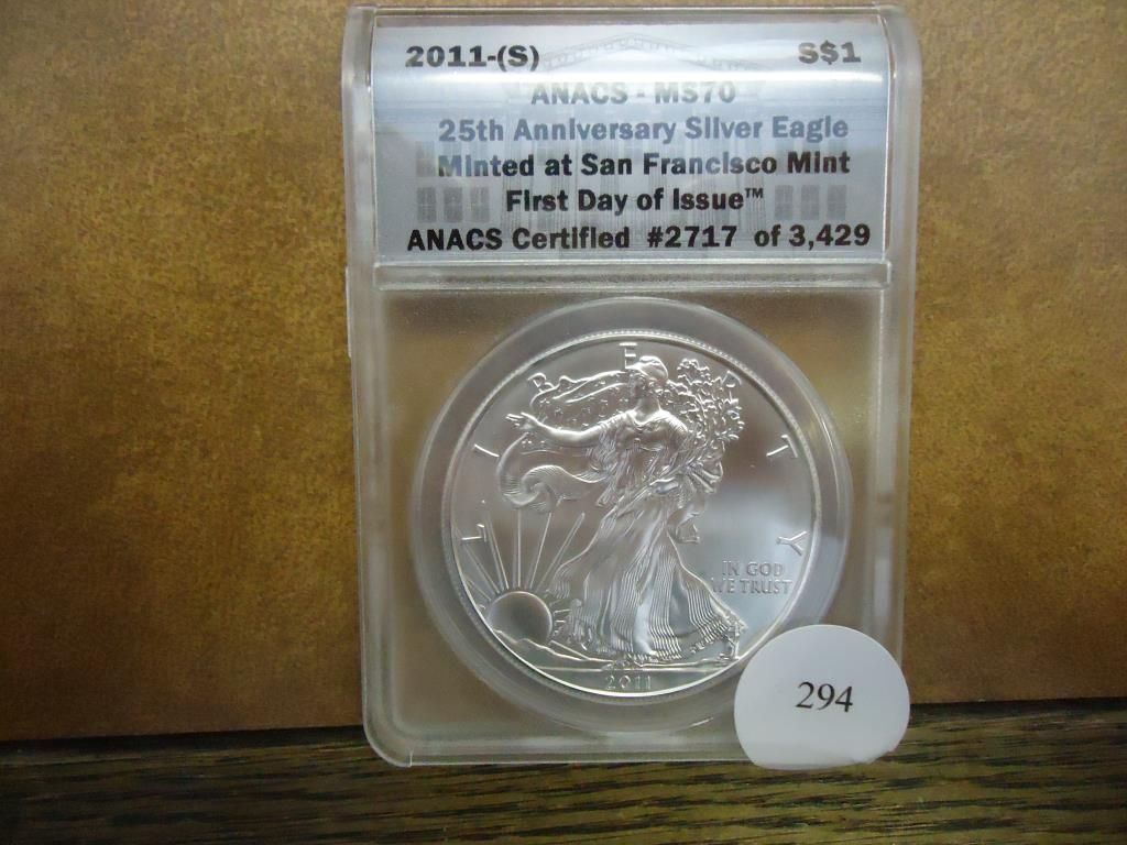 25TH ANNIVERSARY SILVER EAGLE MINTED AT THE SAN FRANCISCO MINT, 1ST DAY OF ISSUE