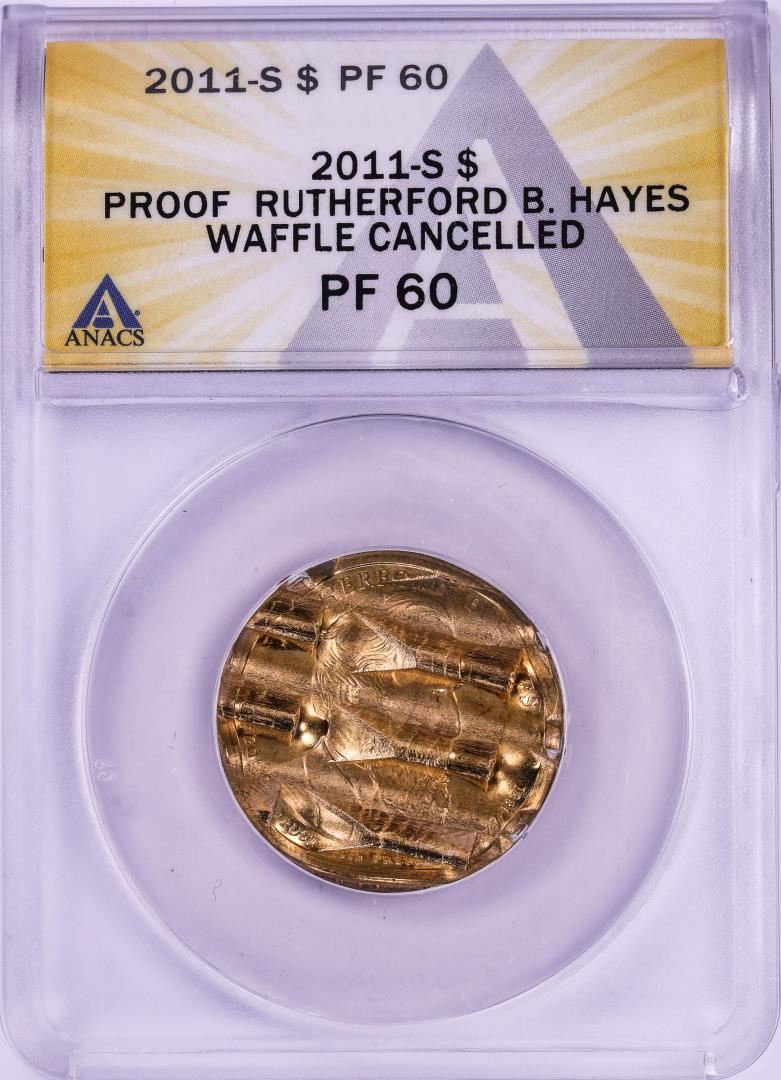 2011-S Proof Rutherford B. Hayes Presidential Dollar Waffle Cancelled Coin ANACS PF60