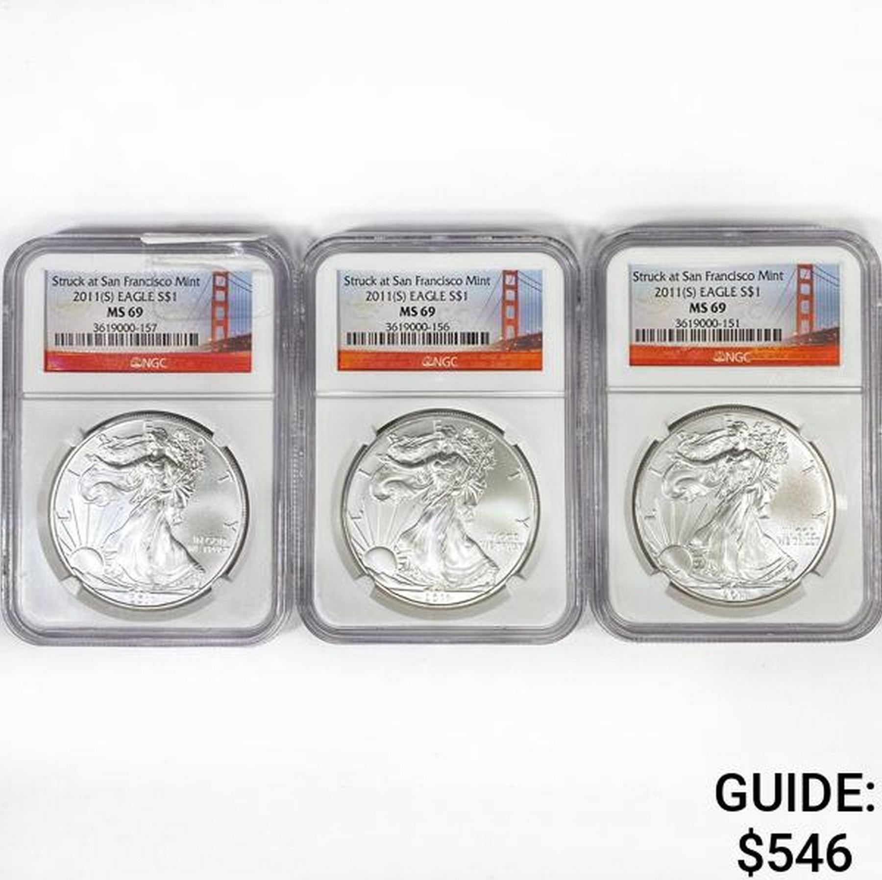 2011[S] Set [3] American Silver Eagles NGC MS69