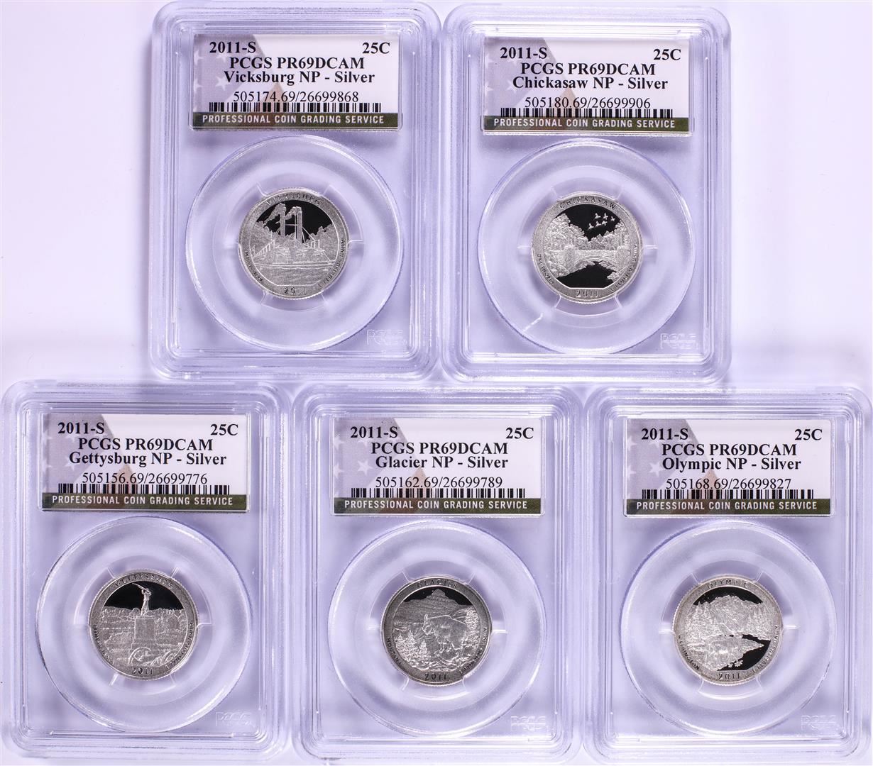 2011-S Silver Proof National Parks Quarter (5) Coin Set PCGS PR69DCAM