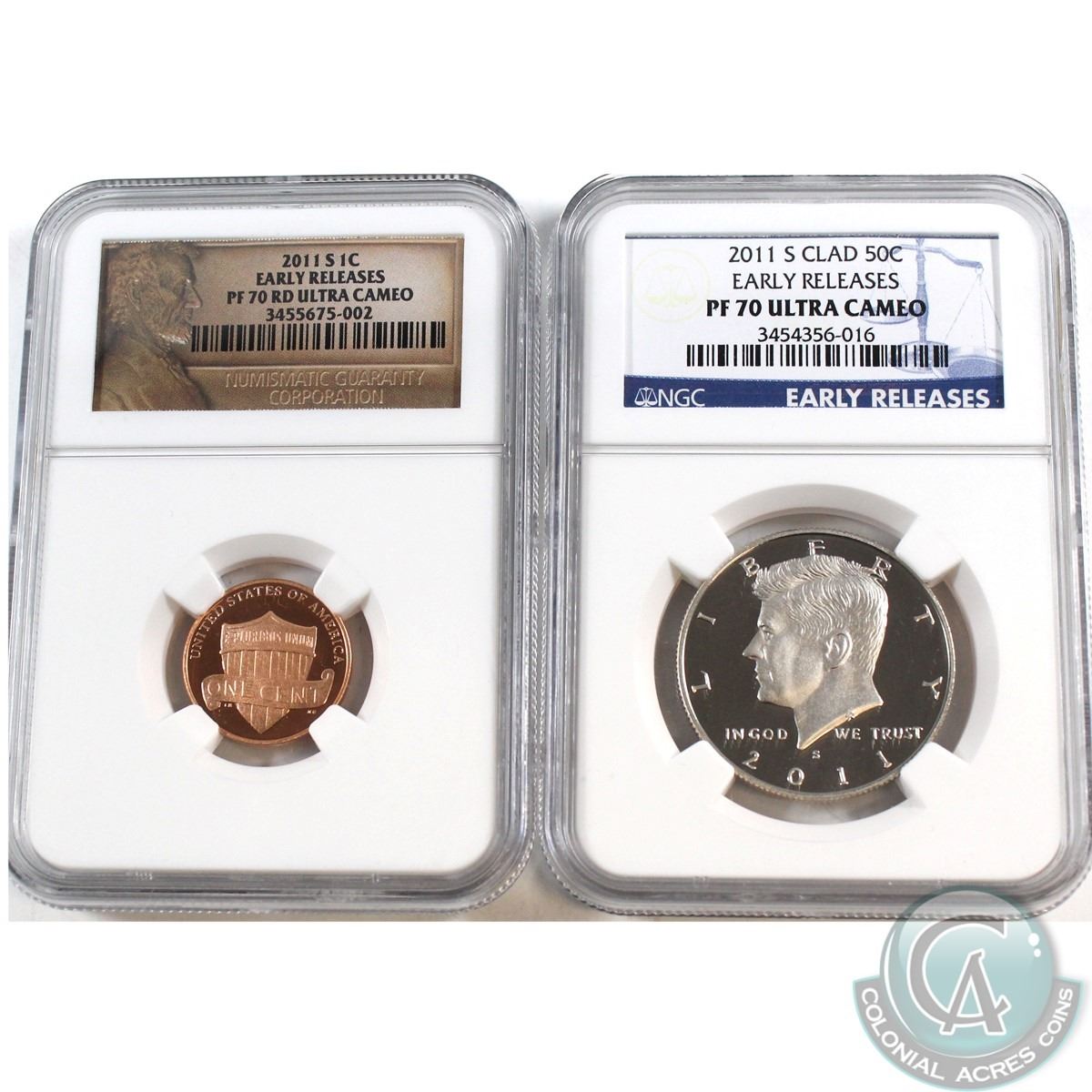 2011-S USA 1-cent & 2011-S Clad 50-cent NGC Certified PF 70 Ultra Cameo. 2pcs