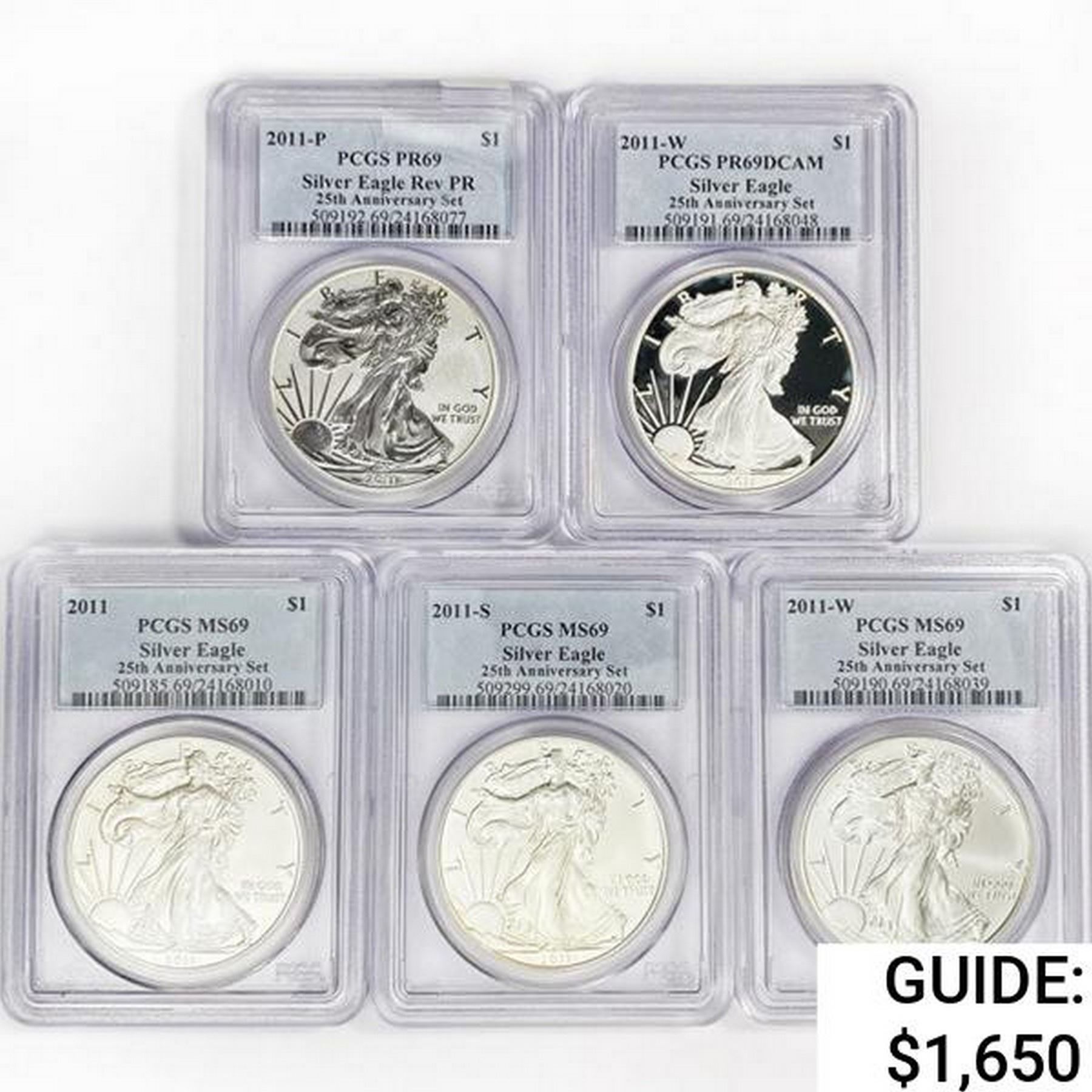 2011 SET [5] Silver Eagle PCGS 25th ANNIVERSARY S