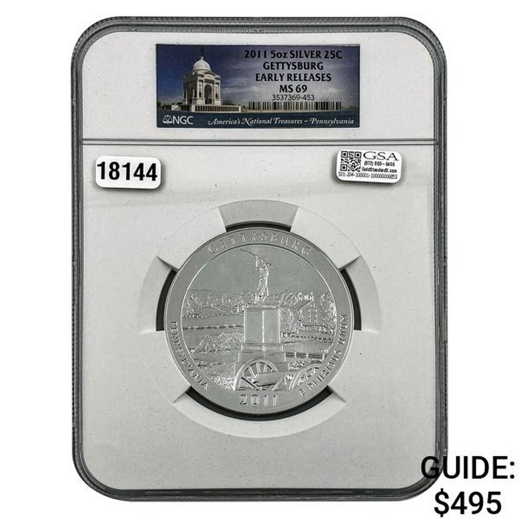 2011 Silver 5 oz 25c Gettysburg NGC MS69