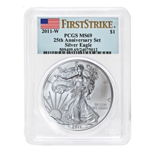 2011 Silver Eagle 25th Anniv Set MS/PR-69 PCGS (FS) Blu **|**|** Year: 2011 ; Mint Mark: 69 ; Grade: varies ; Denomination: $1 ; MSRP: $1200