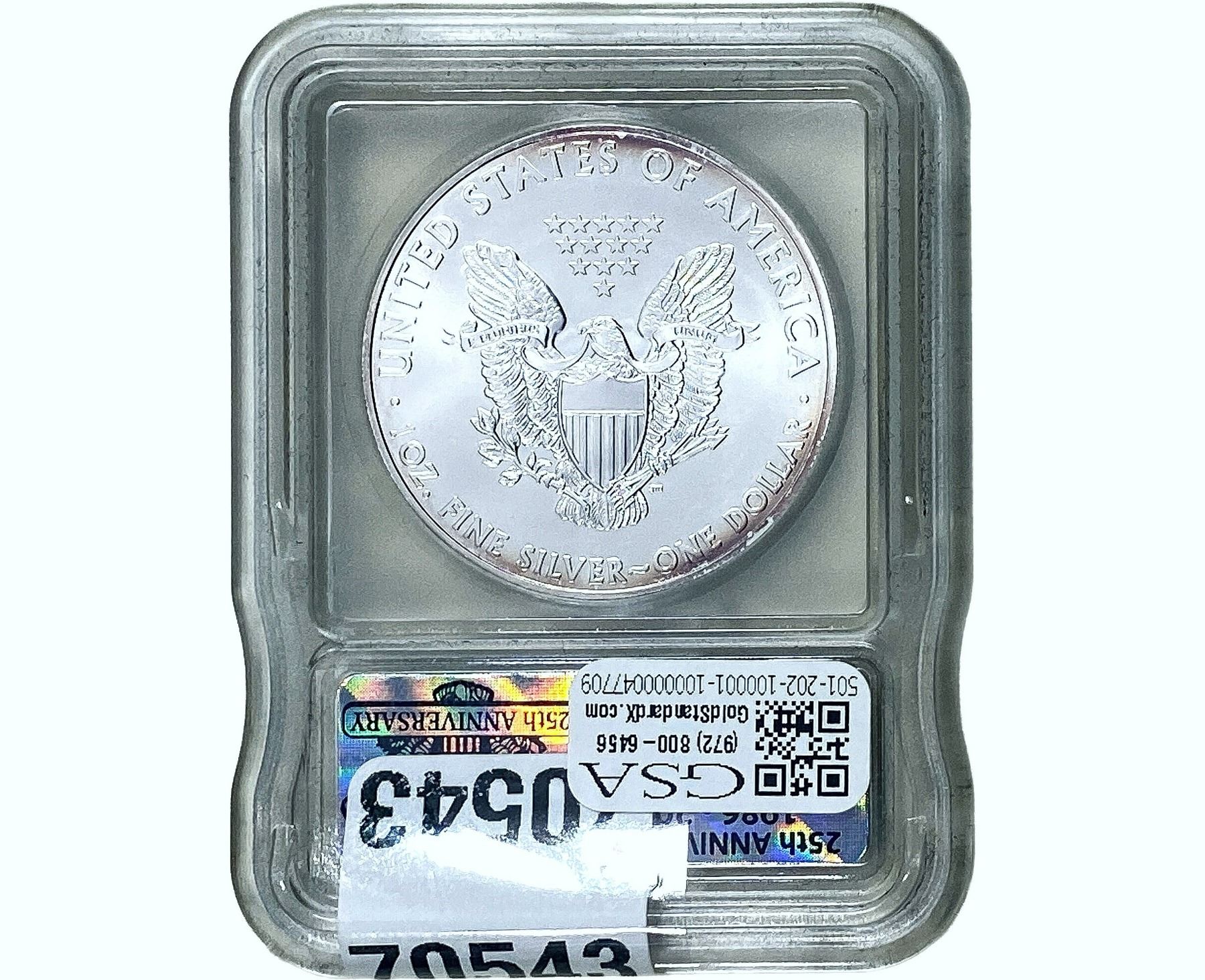 e. Coins sold referencing a third-party grading service are sold “AS IS” without any express or implied warranty, except for a guarantee by GSA that they are genuine. Removal or alteration of the holder, voids all of Bidder’s claims concerning that Product. Certain warranties may be available from the grading services and Bidders are referred to them for further details: Numismatic Guaranty Corporation (NGC), PO Box 4776, Sarasota, FL 34230, www.ngccoin.com/services/writtenguarantee.asp; Professional Coin Grading Services (PCGS), PO Box 9458, Newport Beach, CA 92658, www.pcgs.com/guarantee.html; ANACS, 6555 S. Kenton St., Ste. 303, Englewood, CO 80111; and Independent Coin Grading Co. (ICG), 7901 East Bellview, Ave., Suite 50, Englewood, CO 80111.