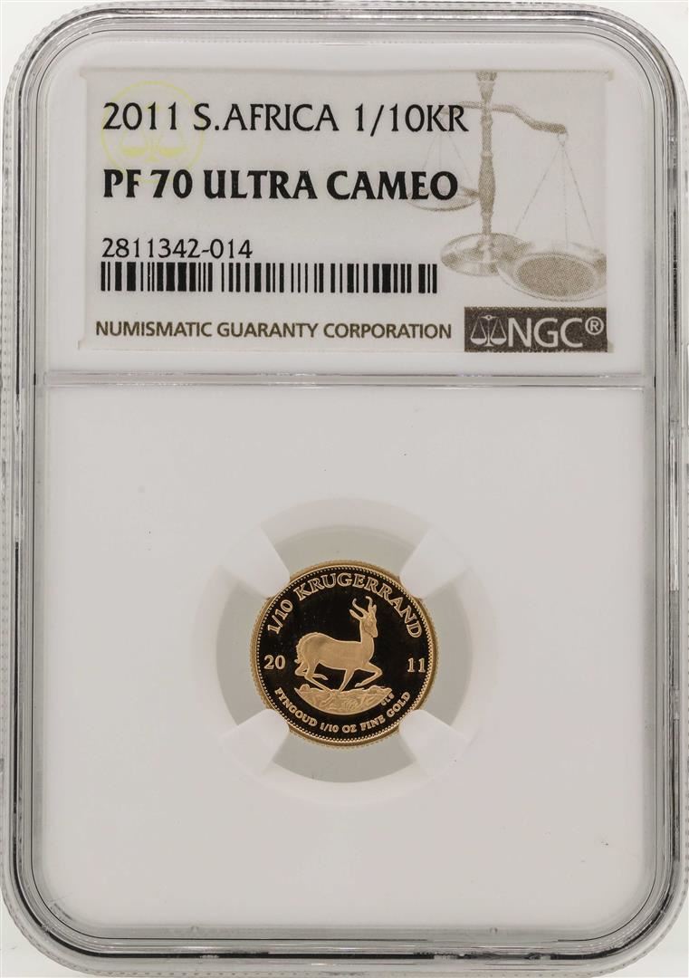 2011 South Africa 1/10 Krugerrand Gold Coin NGC PF70 Ultra Cameo