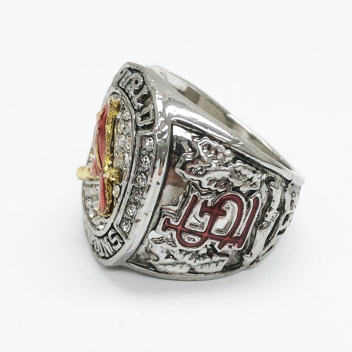 2011 St. Louis Cardinals - MLB Championship Ring. A Red Enameled Perching Cardinal Faces The Stone Crusted Silver Colored Ring. One Of The Nicest Designs For A Champions Ring. View Photos For Further Details. Â