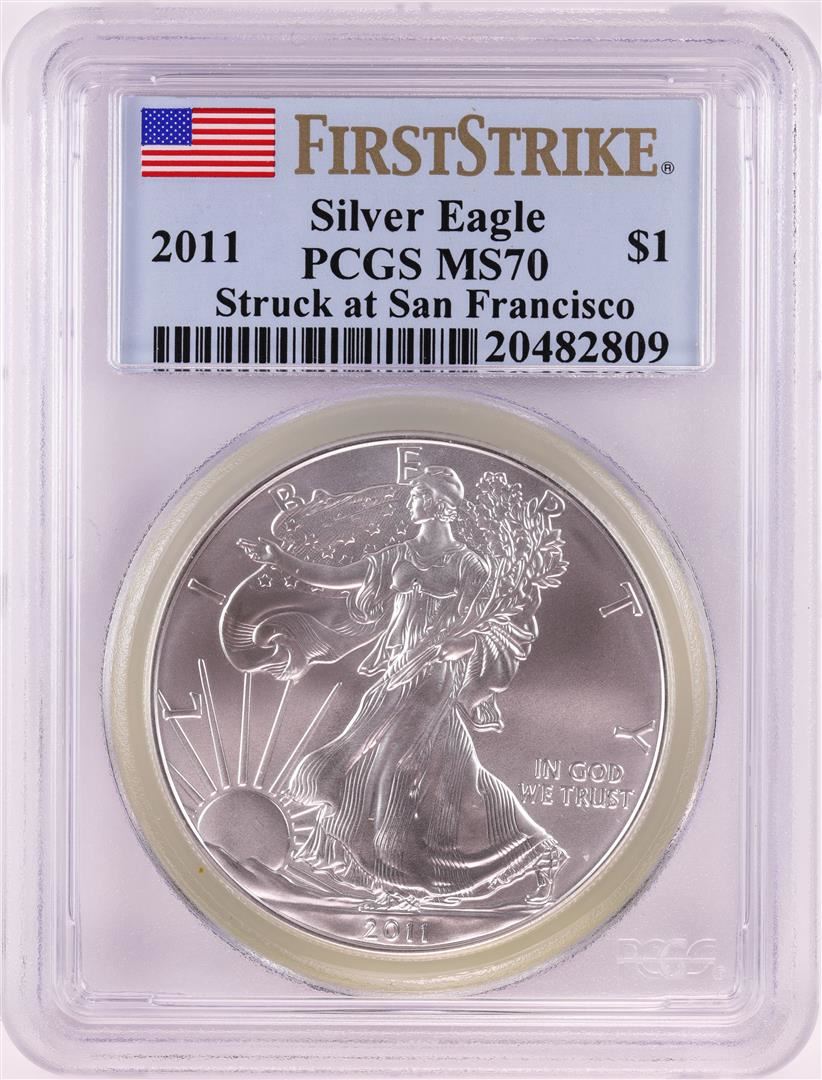 2011 Struck at San Francisco $1 American Silver Eagle Coin PCGS MS70 First Strike