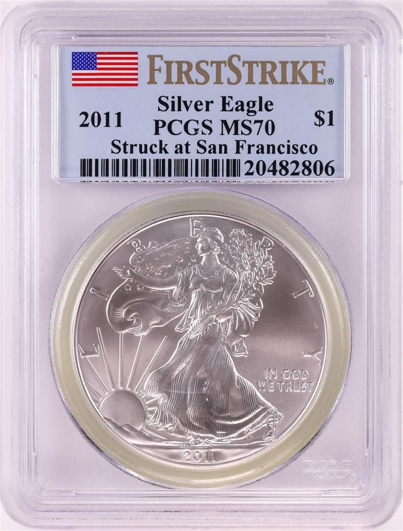 2011 Struck at San Francisco $1 American Silver Eagle Coin PCGS MS70 First Strike
